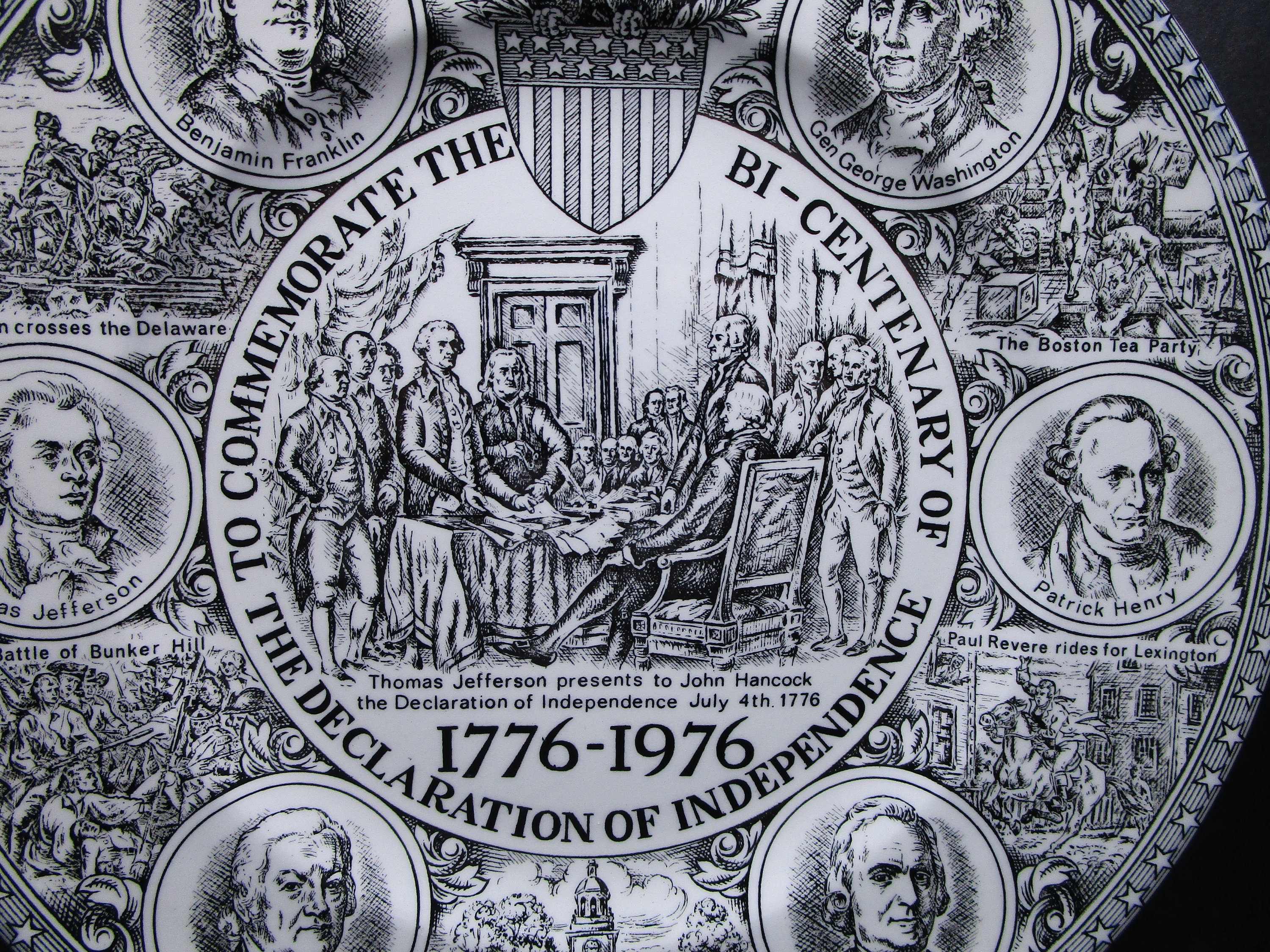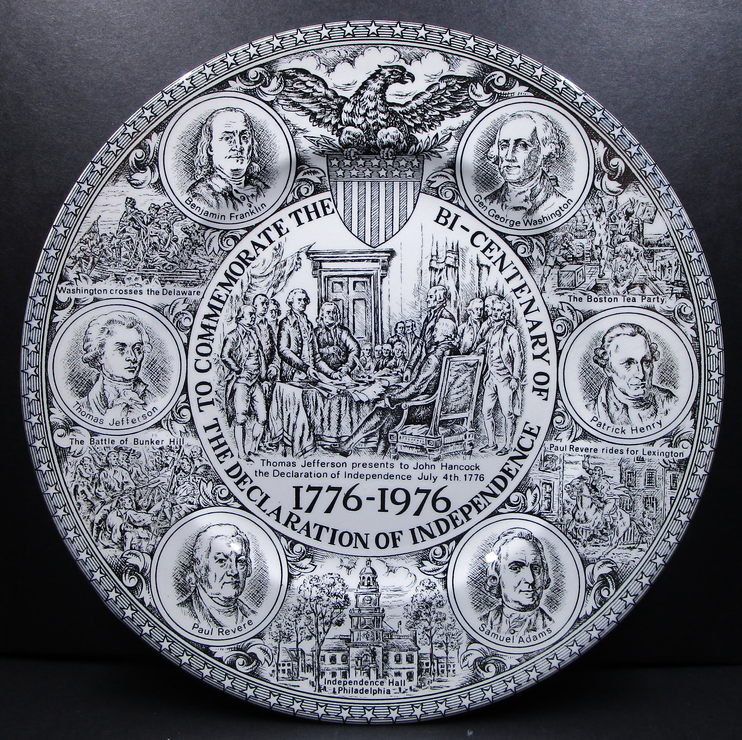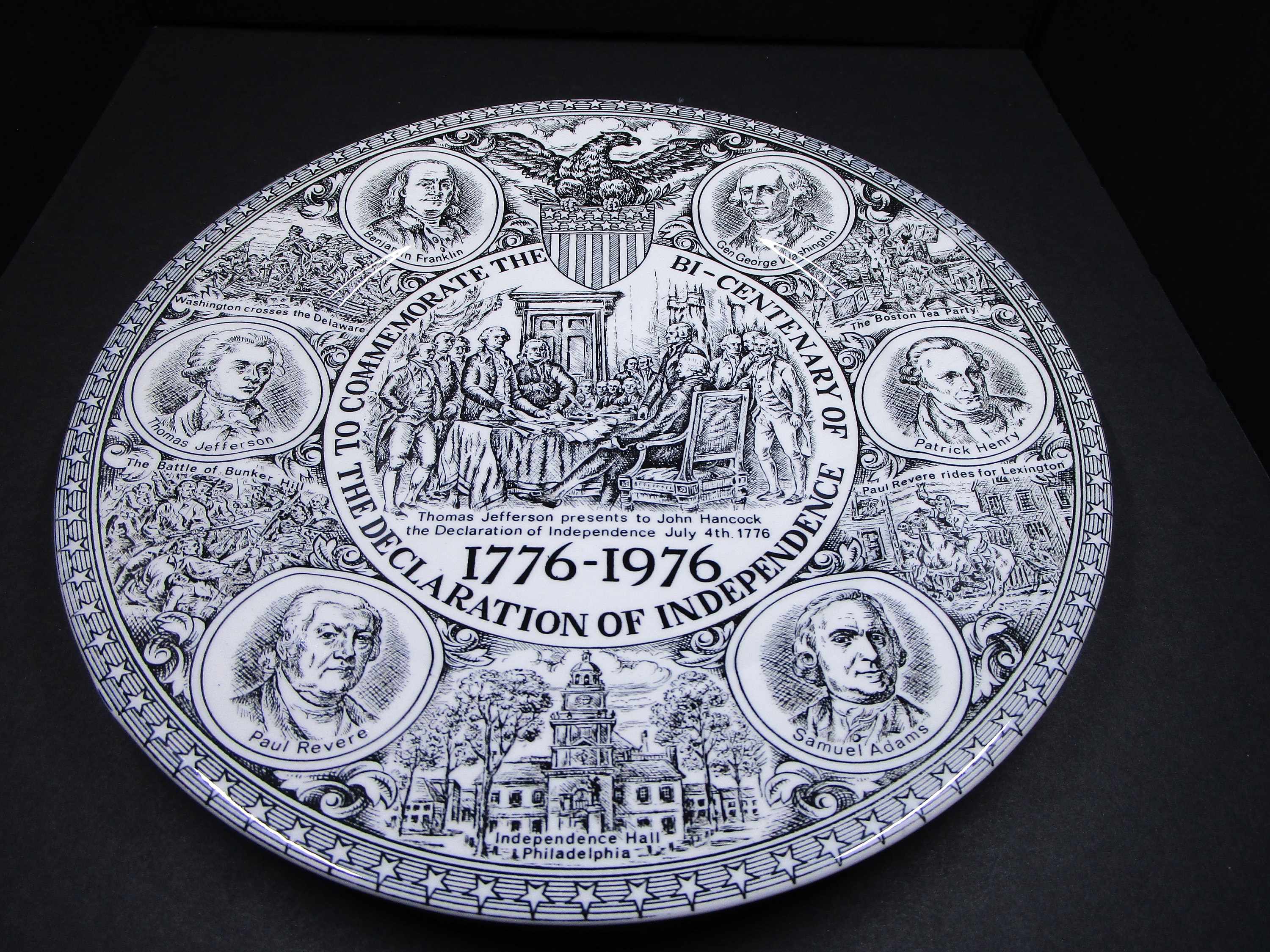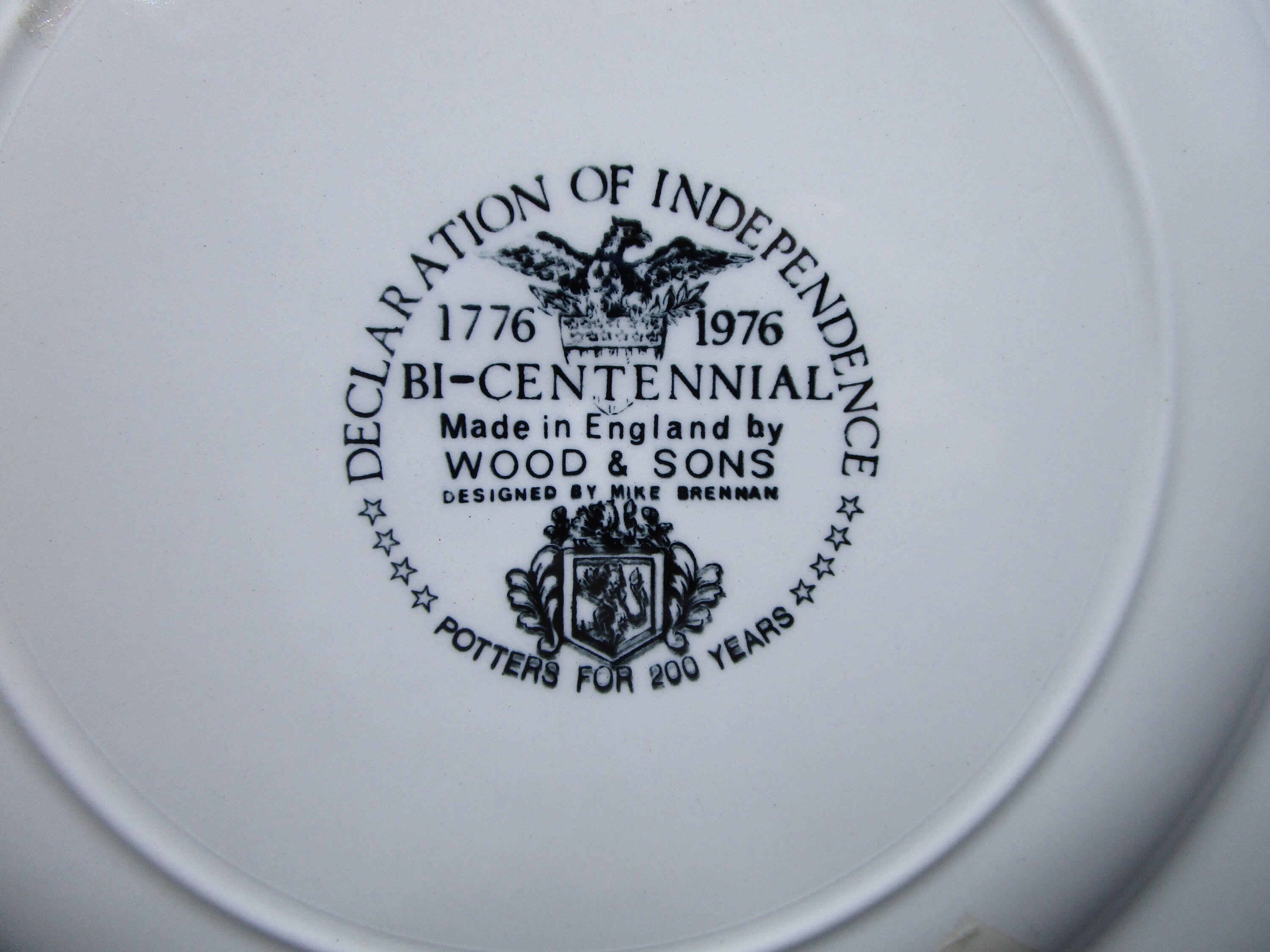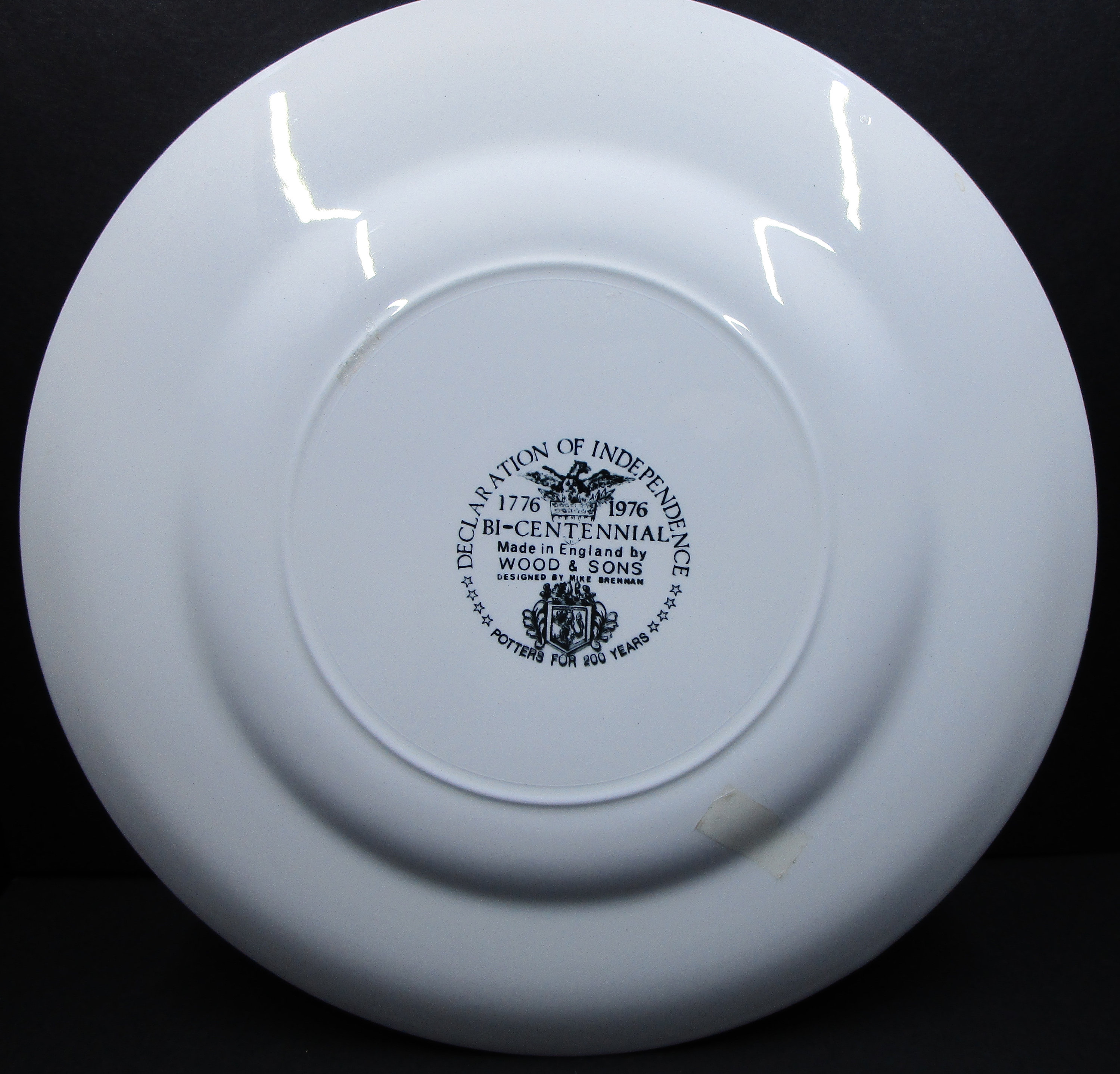Beautiful decorative plate, to commemorate the Bi-Centennial of the Declaration of Independence. Wood and Sons is the maker, Mike Brenman, the designer.