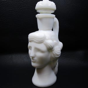 What a cute little set! This vintage 1970's Avon Victorian swirl glass mini pitcher measures 5 1/4"H x 4"W, and has a rose relief on the body, handle and stopper top. Pitcher was originally filled with Avon bubble bath (and is empty of product). The "wash basin" measures approximately 5" diameter, with a rose relief on the outside. Together they measure 6" high.