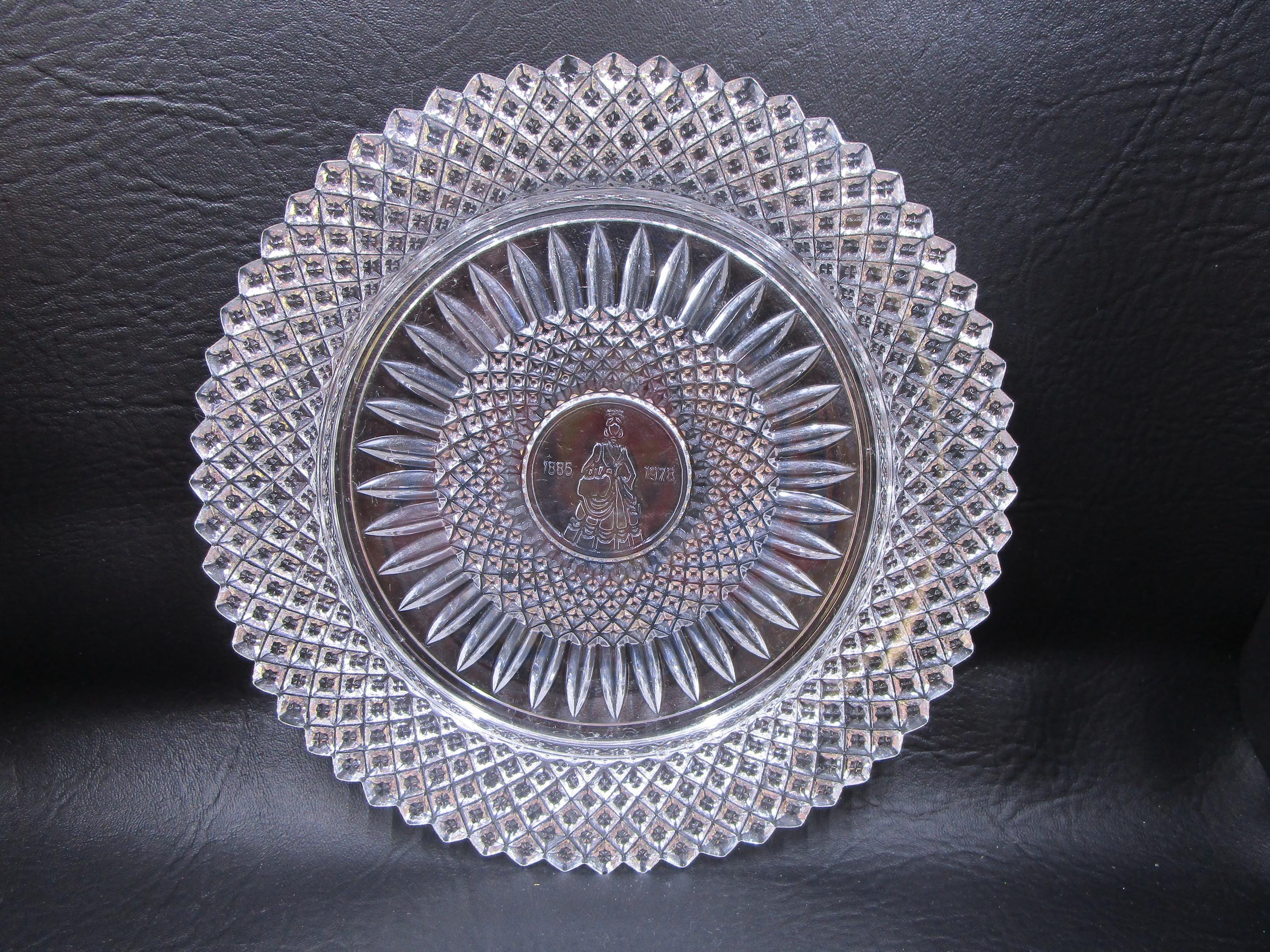 Part of the collection of Fostoria crystal plates presented as service awards for Avon Representatives in 1978. (Part of Avon's 92nd Anniversary Prize Program.)
