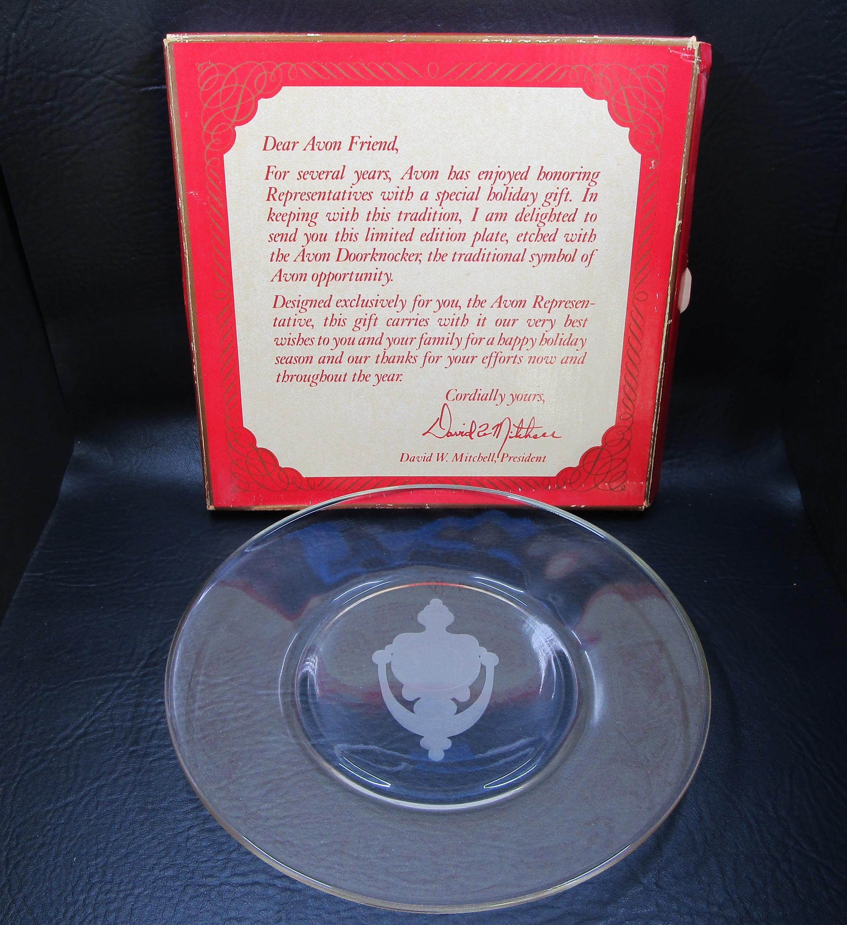 Avon Commemorative Plate Door Knocker Clear Glass Etched 8" Gift for Reps