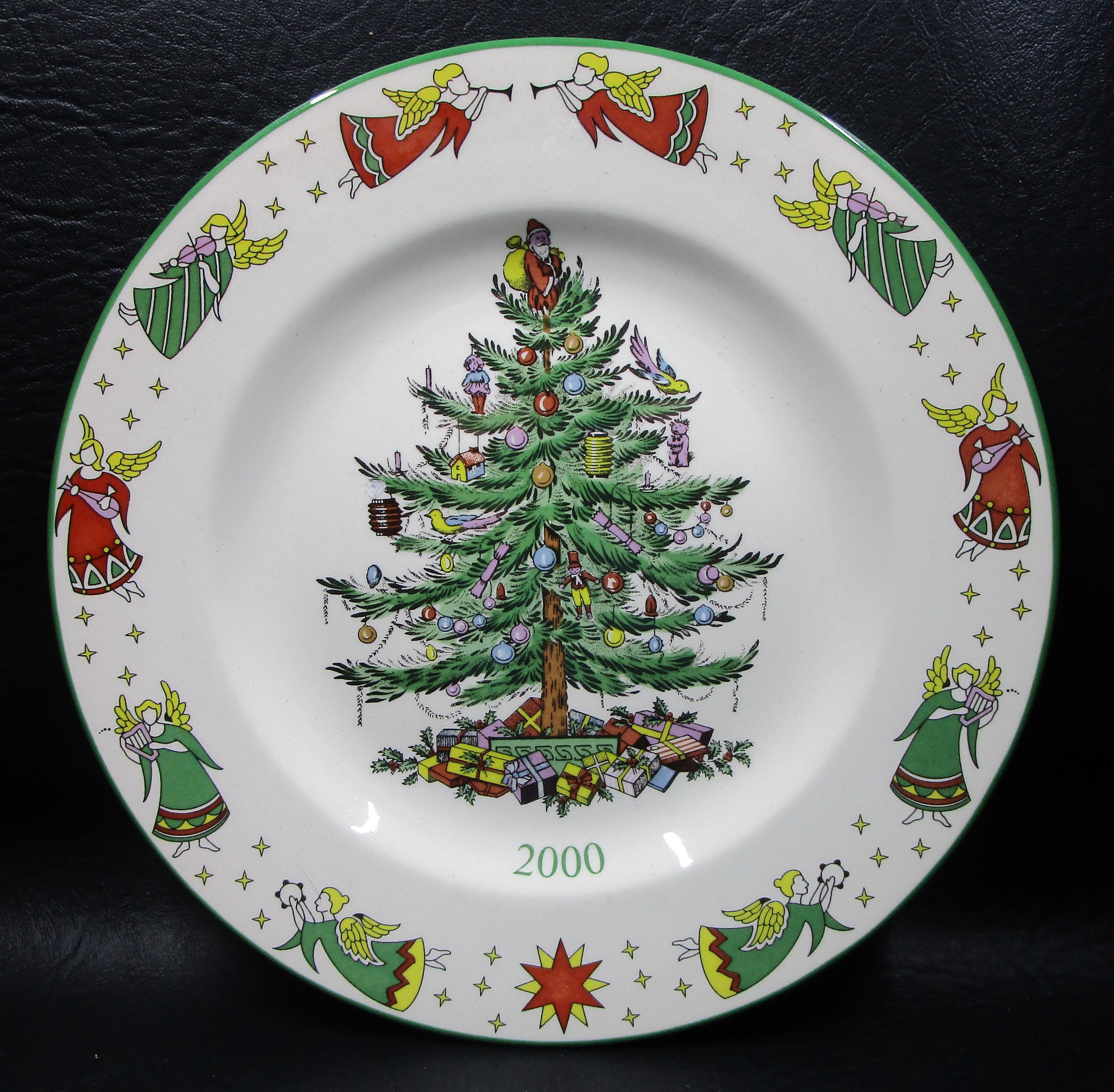 Plate Title: 2000 Christmas Tree with Angel Choir border, green rim