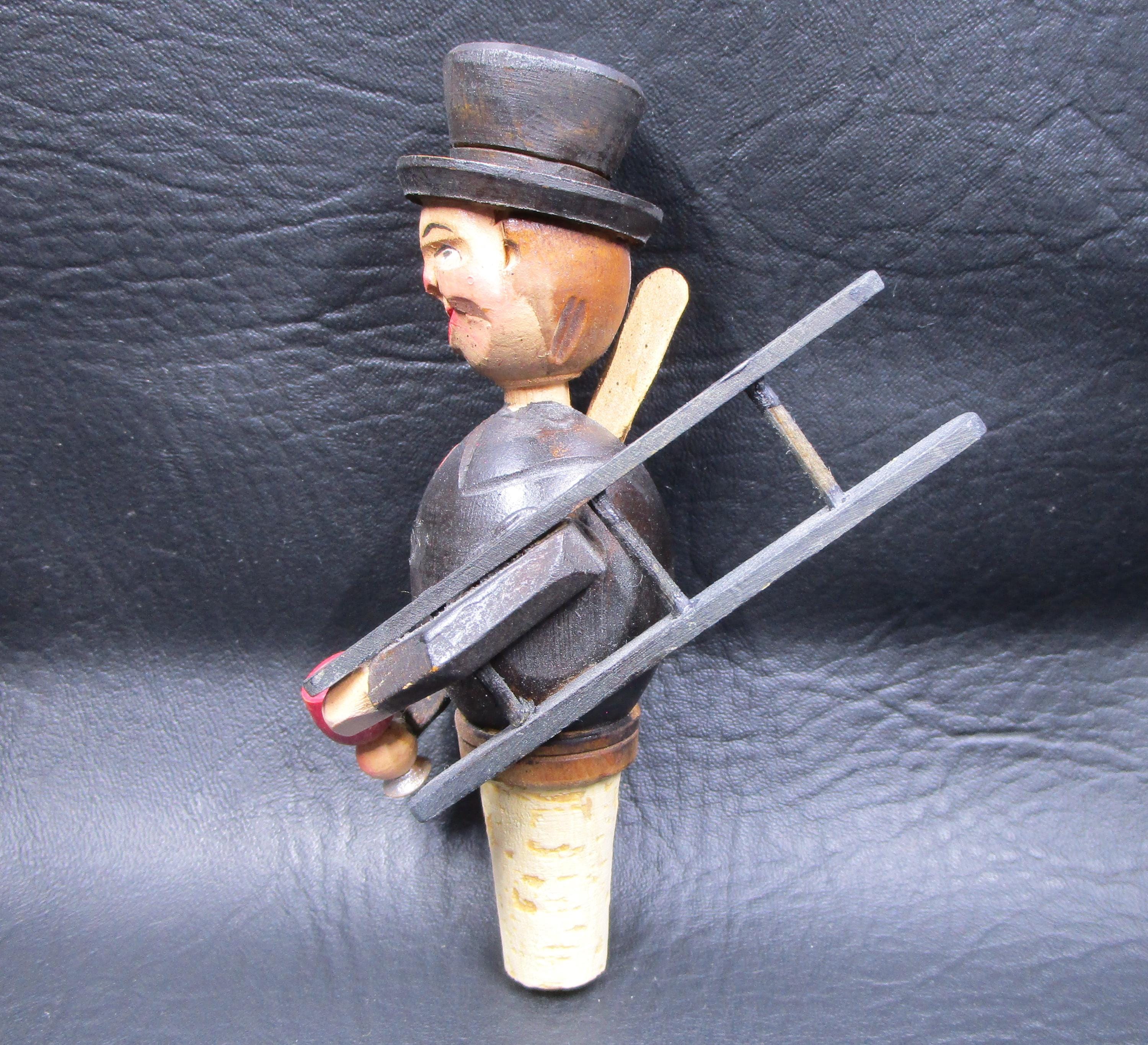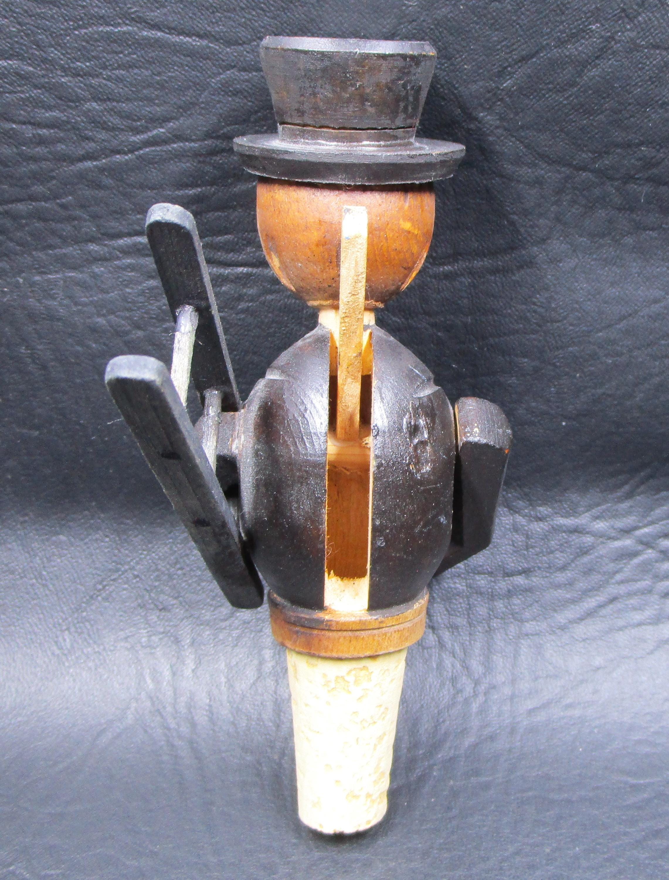 Anri Mechanical Wine Stopper Chimney Sweep Hand Carved Wood
