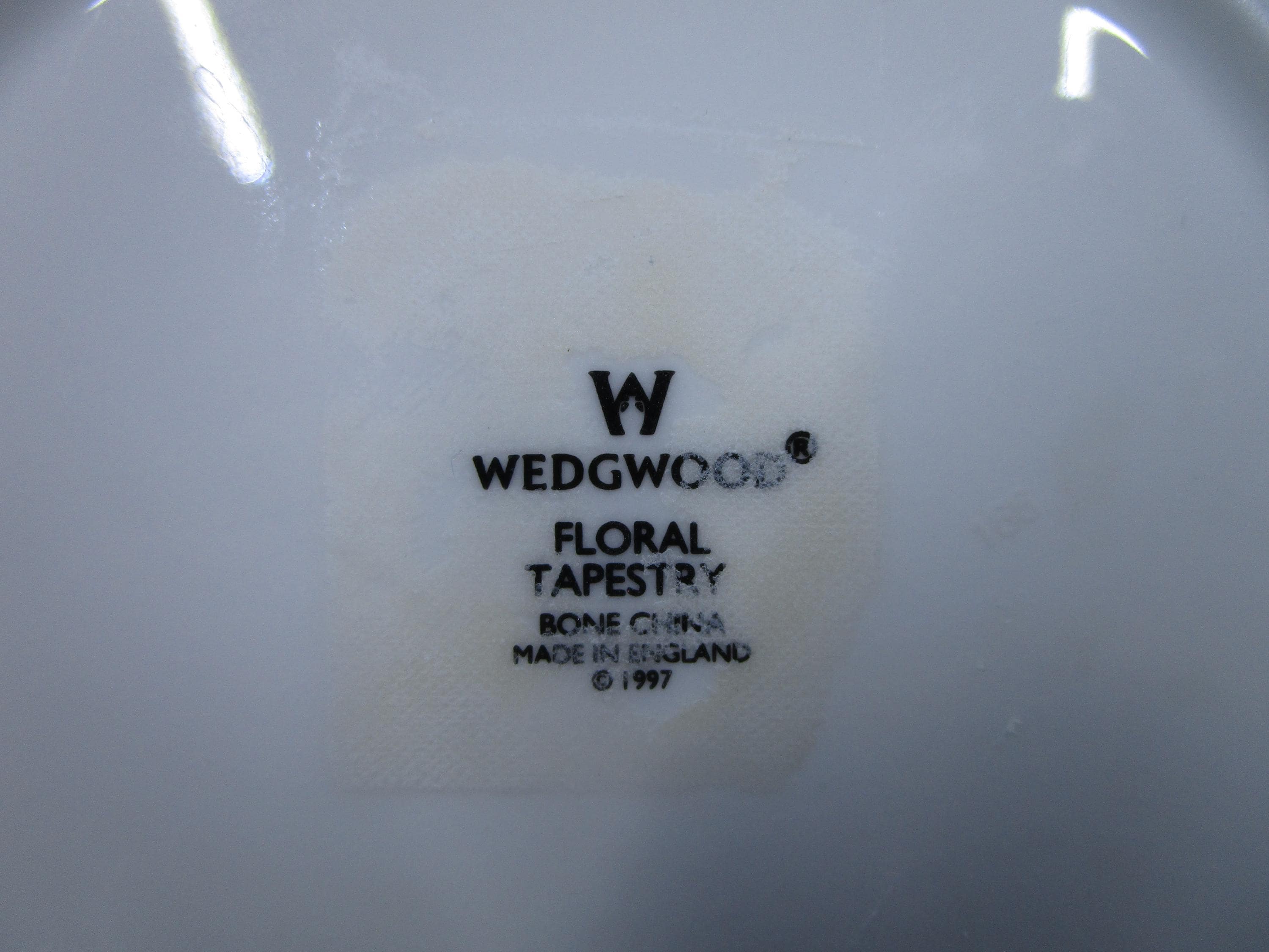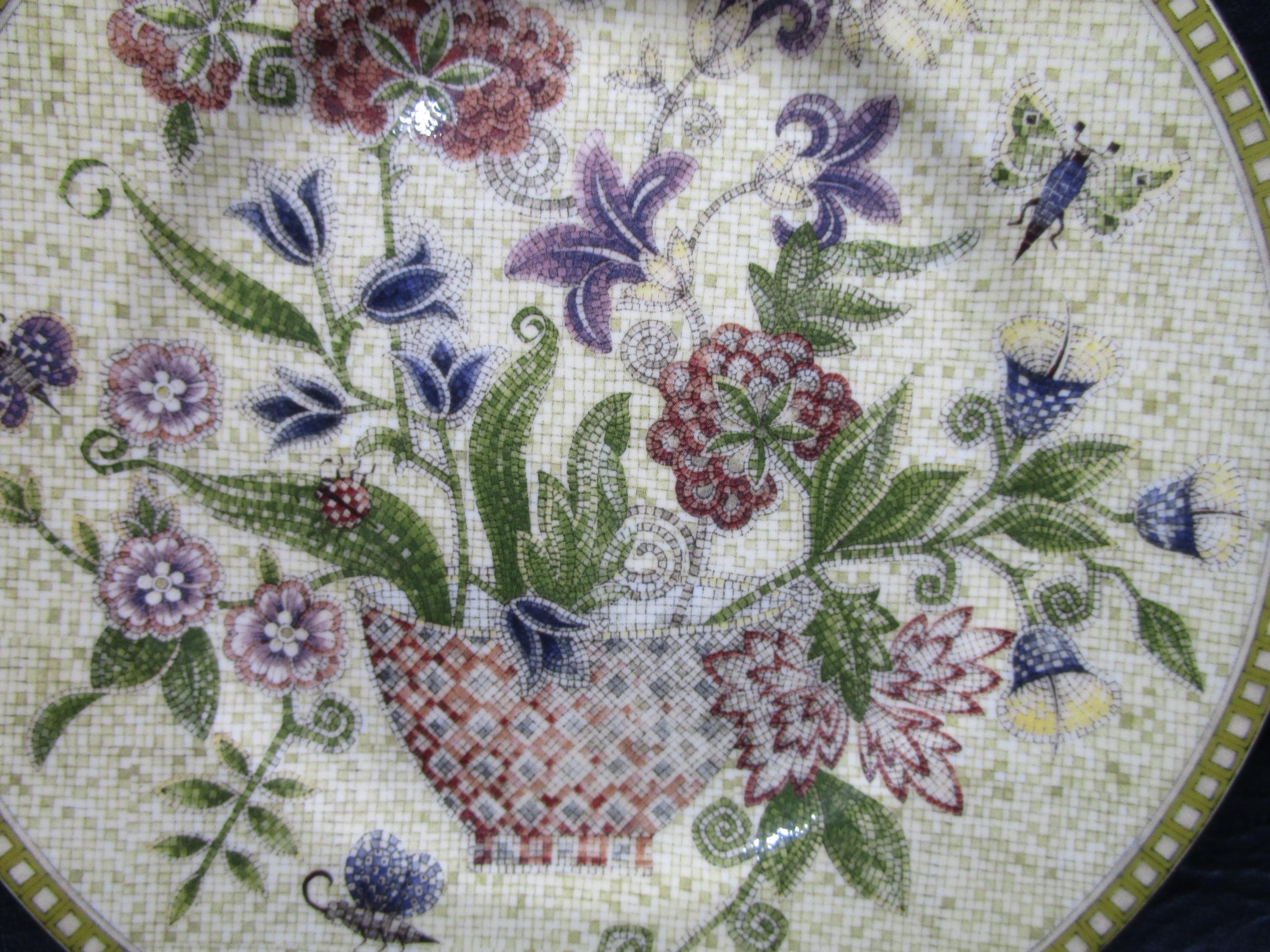 Item: Seven-inch dessert/pie plate in Wedgwood's FLORAL TAPESTRY pattern. The pattern was produced 1997-2005. Wedgwood mark on the bottom.