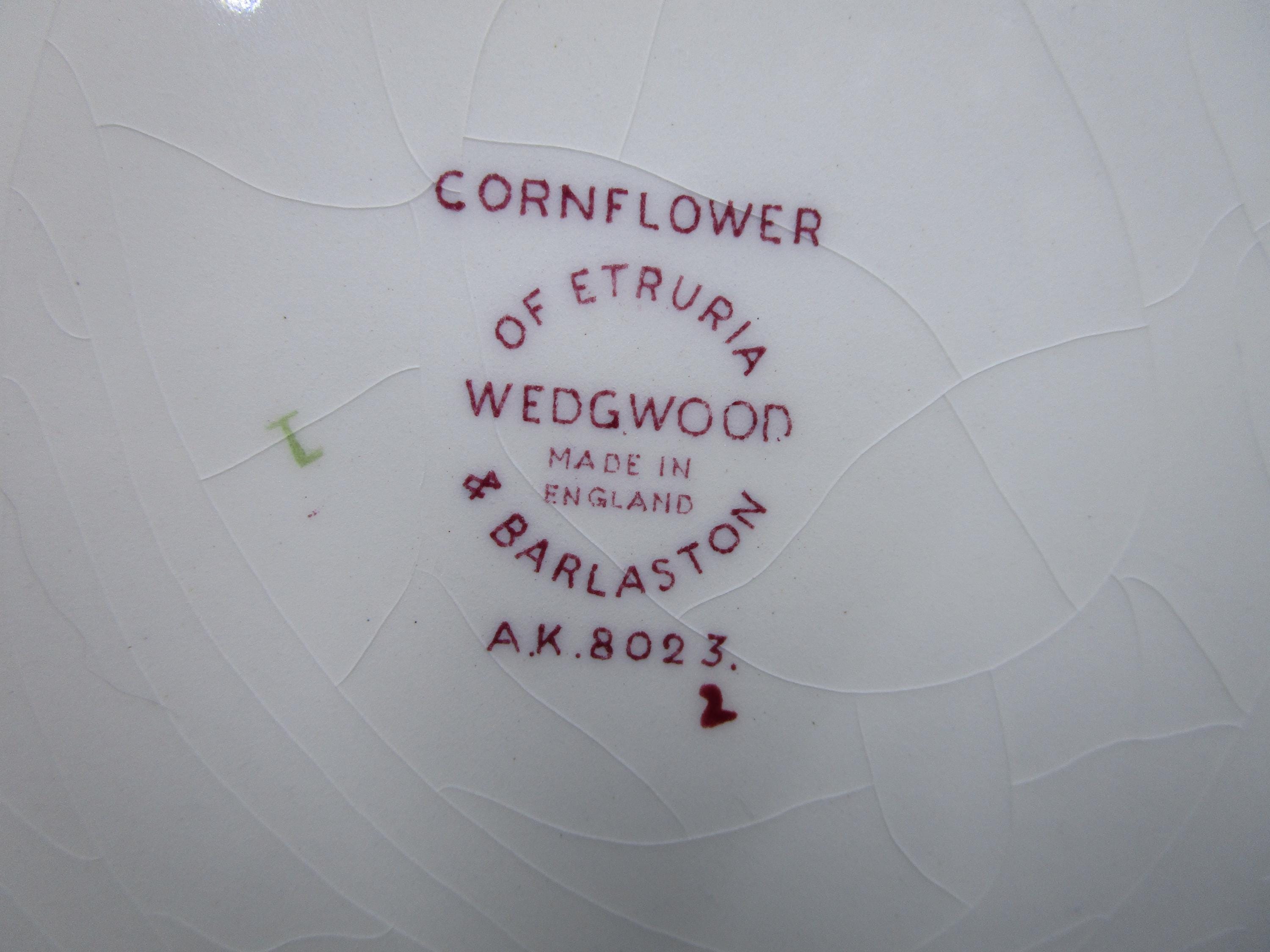 Item: Ten and three-quarter inch dinner plate in Wedgwood's CORNFLOWER pattern. The pattern was produced 1940 - 1964. Wedgwood mark on the bottom.