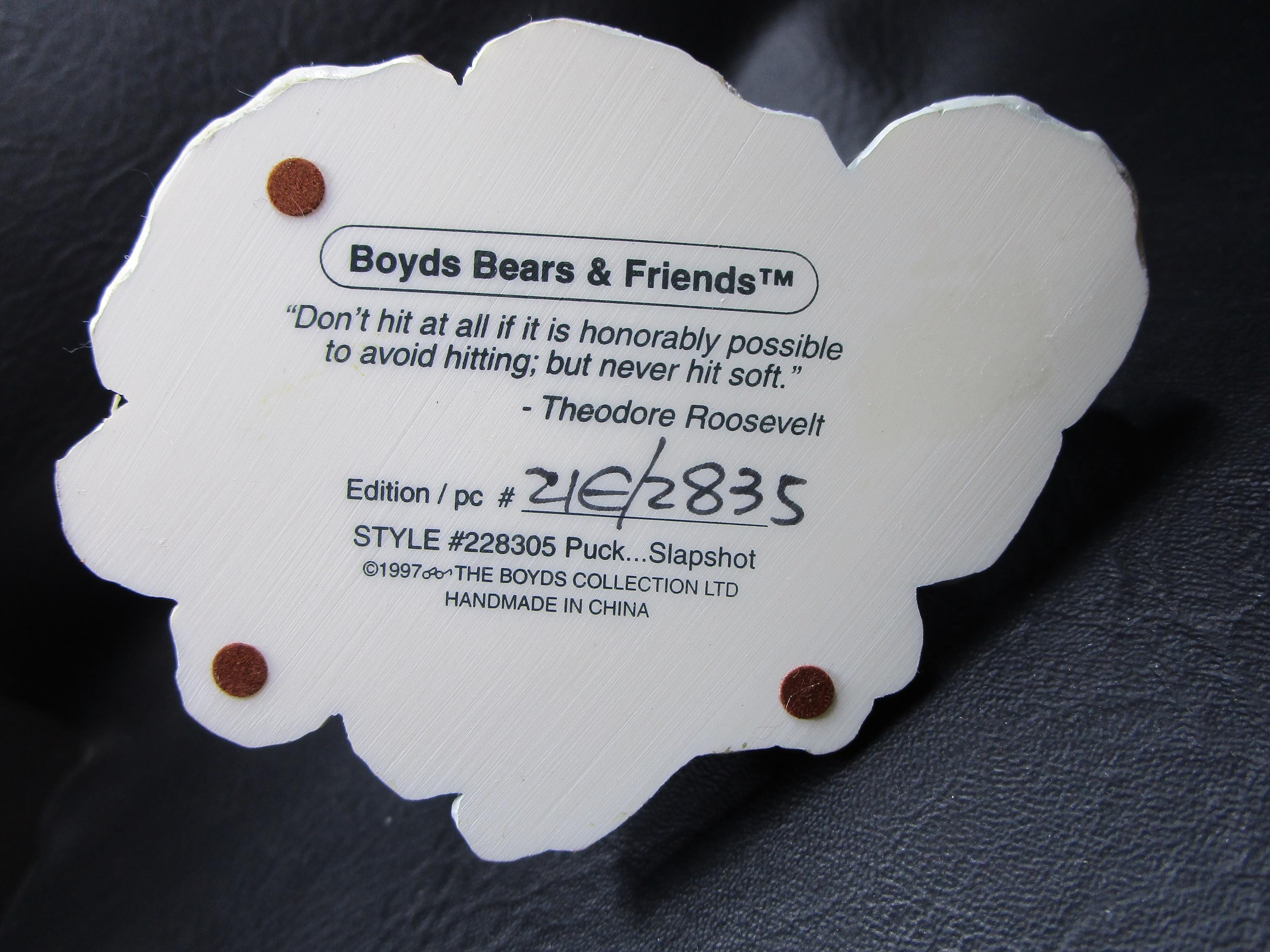 Boyds Bears "Puck....Slapshot" Hockey Figurine Item 228305 Issued 1997
