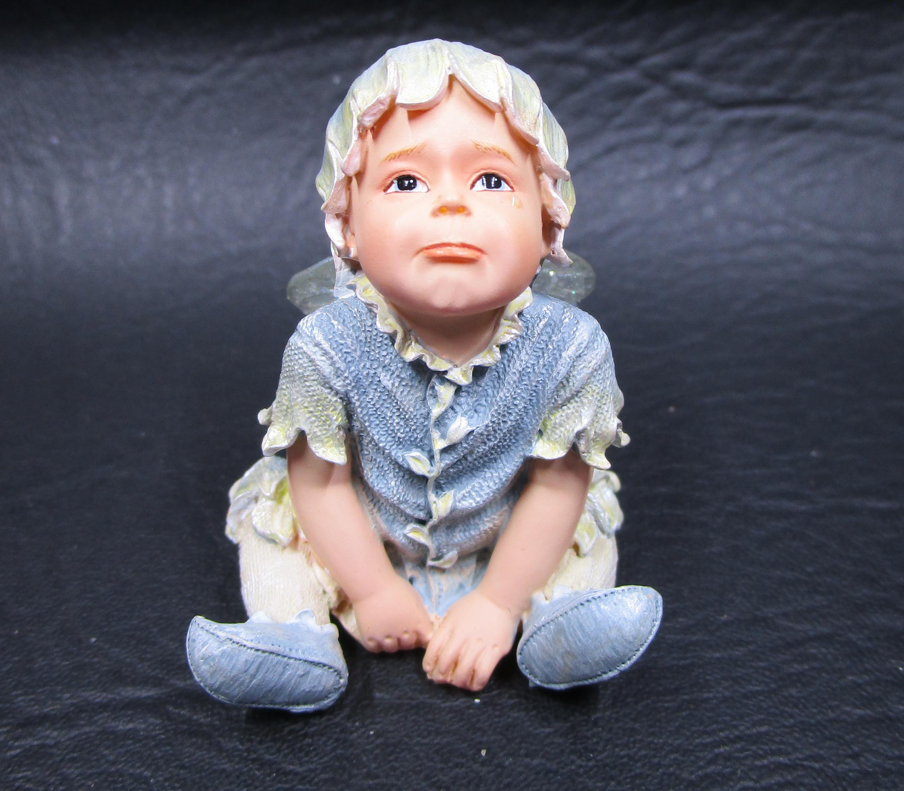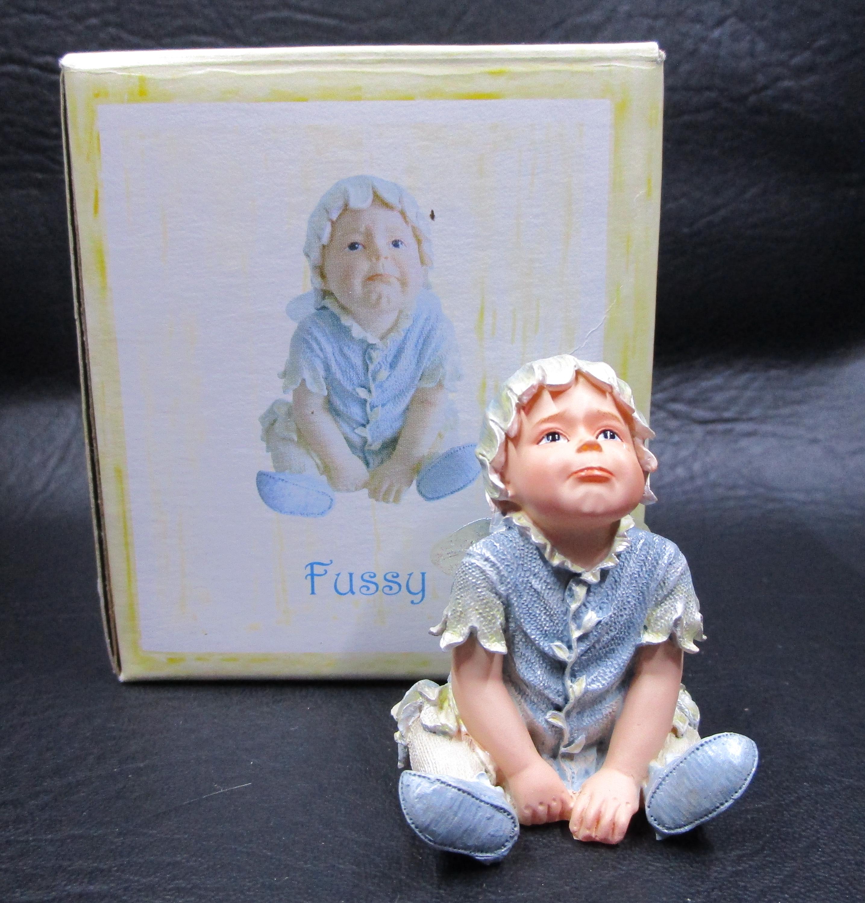 Item: Regardless of his mood, FUSSY the Faery-baby is adorable in blue attire, and, of course, we are envious of glittery wings!