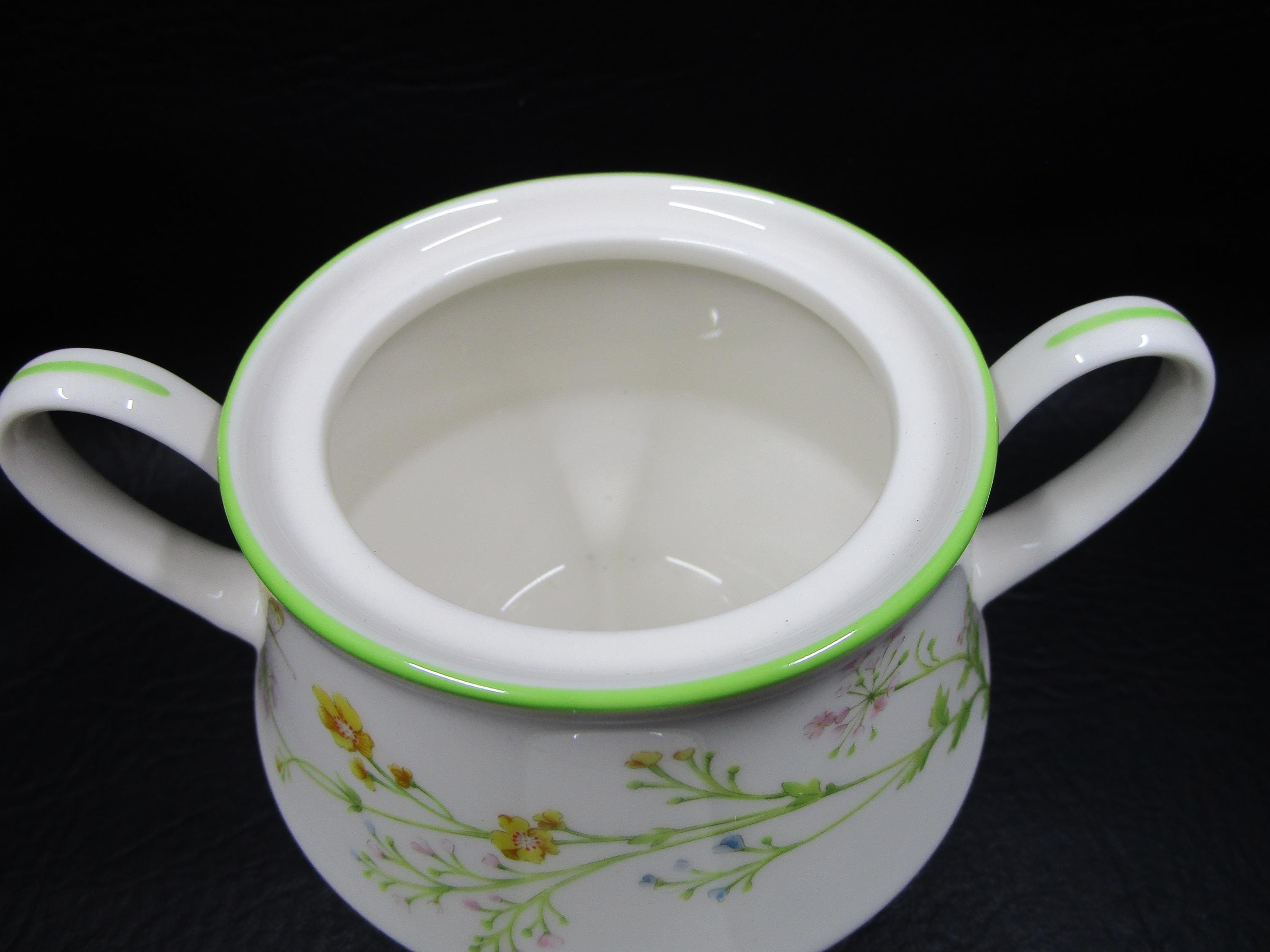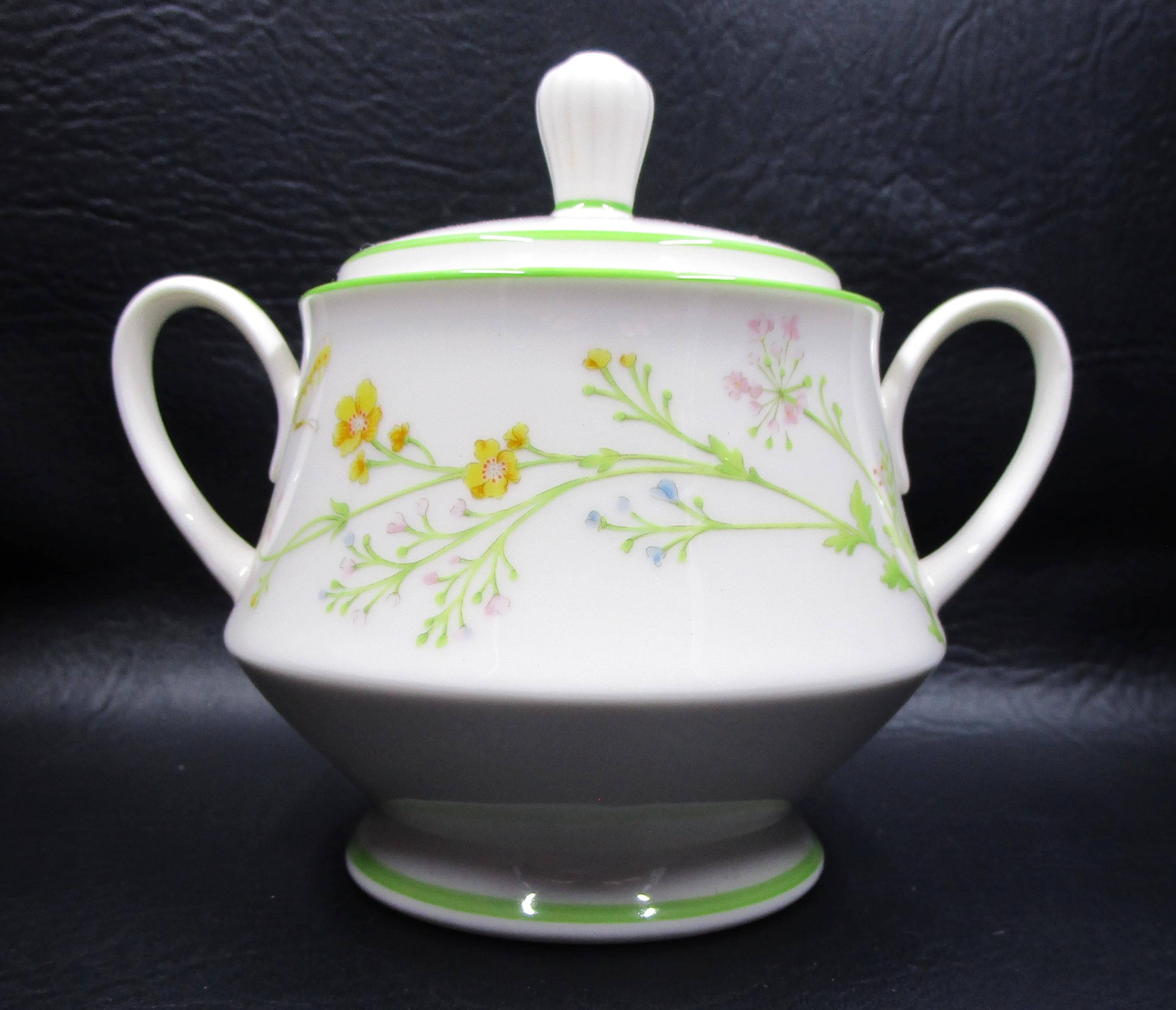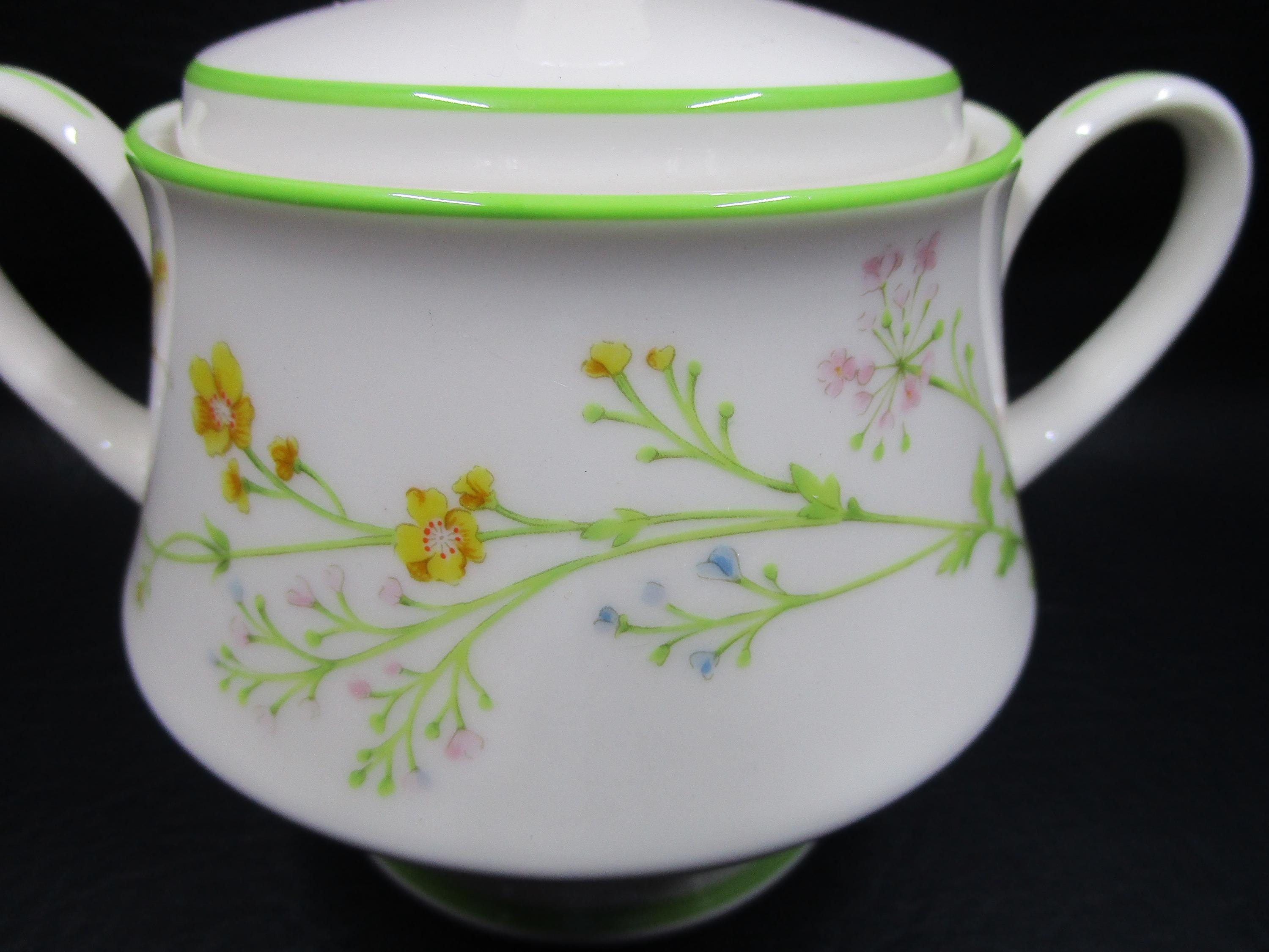 Noritake REVERIE Sugar Bowl with Lid Green Rim